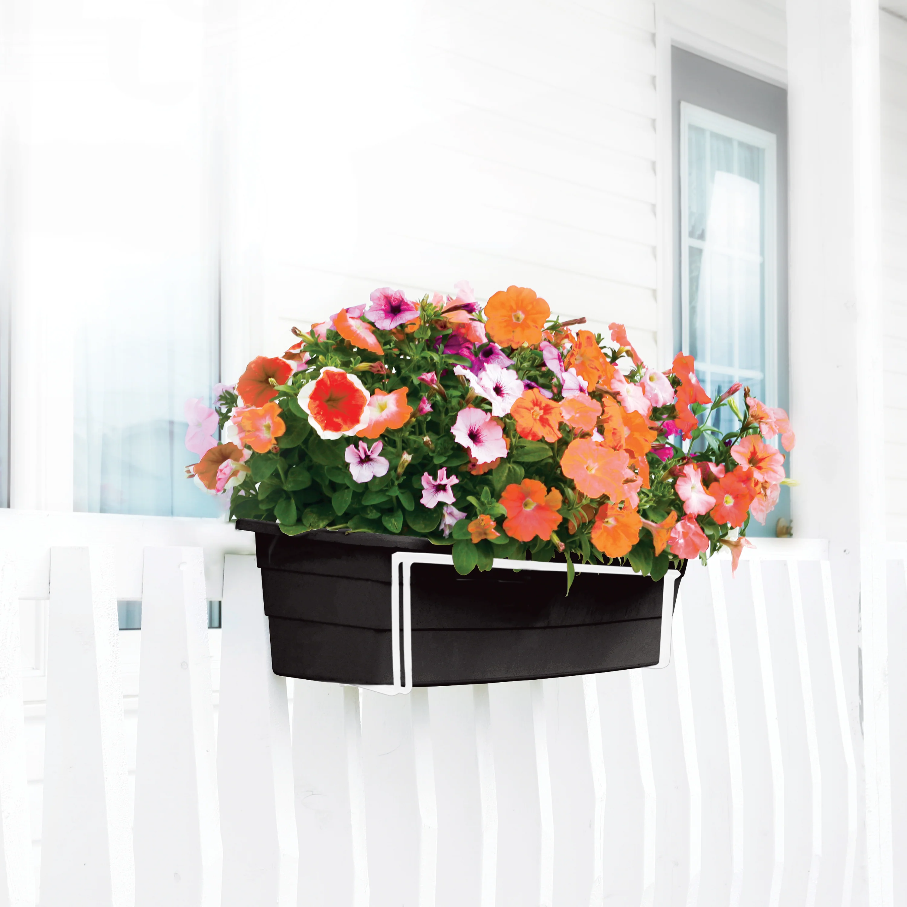 DECKED OUT WITH DECO JOE. Liven up your deck this spring with the Sun Joe® Deco Joe adjustable flower box holder. Designed to accommodate 3.5 to 5.5-inch deck railings, Deco Joe can hold flower boxes 7-inches wide by 18 to 36-inches long. Deco Joe makes it easy to hang and display your potted plants and blossoming flowers. Simply insert your flower box into Deco Joe’s secure base and hook it onto any deck railing from 3.5 to 5.5-inches wide to instantly beautify your deck, balcony, patio, porch, fence or trellis. Made of a durable rust-resistant material, Deco Joe weathers all kinds of weather for long-lasting wear through multiple seasons. Available in black or white, the Deco Joe adjustable flower box holder coordinates nicely with all outdoor décor. GET EQUIPPED® this spring with the Deco Joe adjustable flower box holder—an easy, versatile and affordable way to spruce up your outdoors.