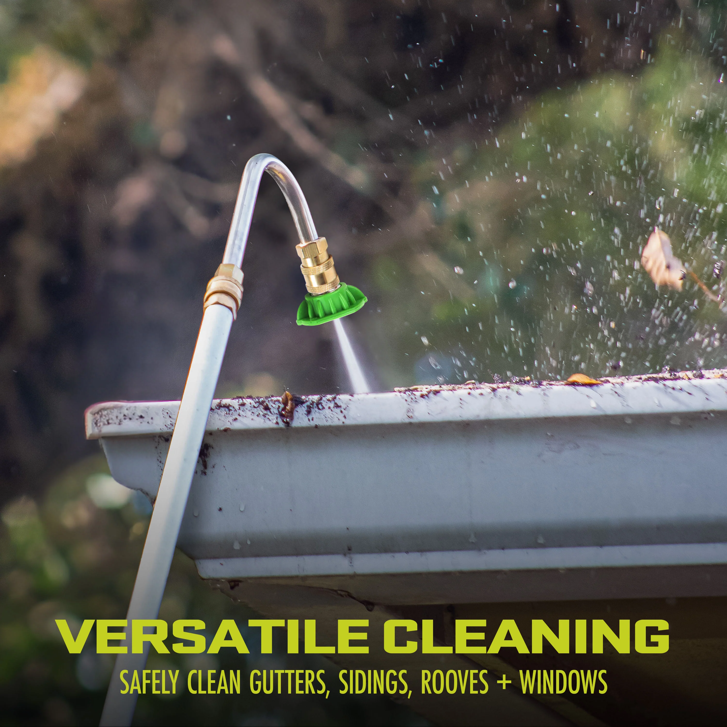 - Ideal for cleaning gutters, roofs, siding, soffits and other hard to reach places around the home + RVs